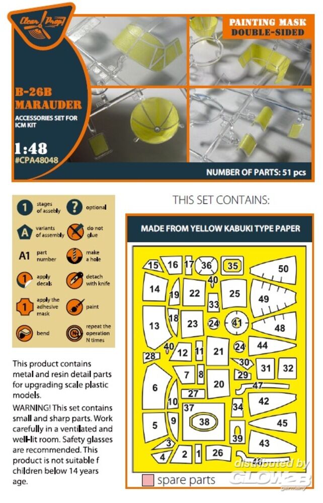 Clear Prop Accessories: B-26B Marauder double-sided painting mask for ICM kit in 1:48 [5072480484]
