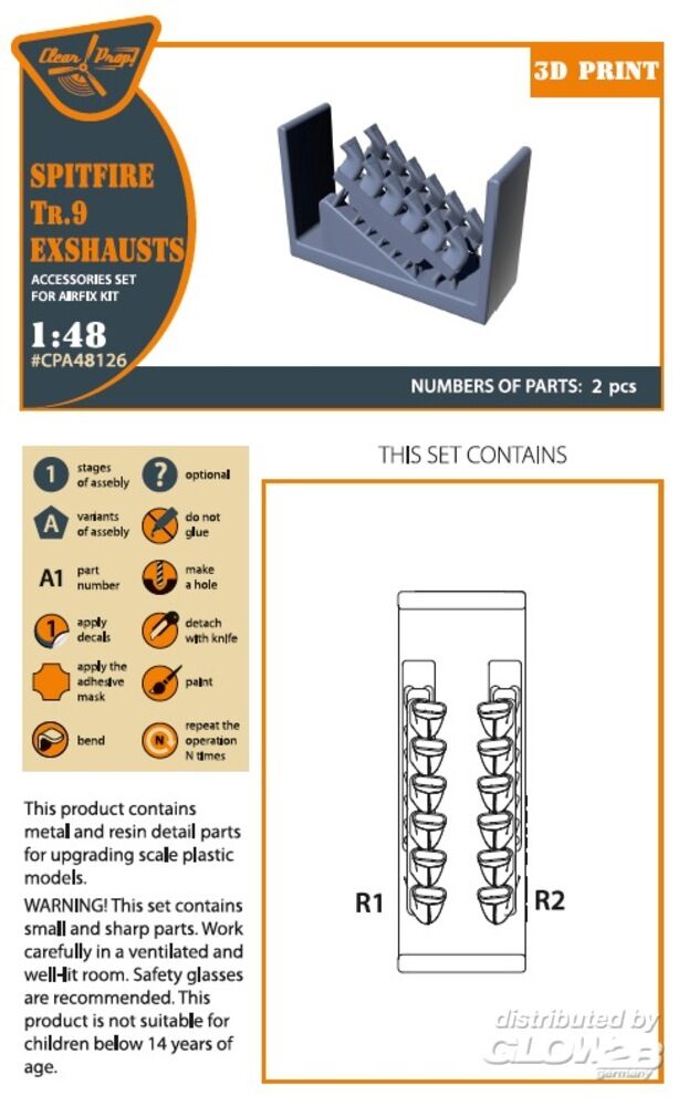 Clear Prop Accessories: Spitfire Tr.9 exhausts for Airfix kit in 1:48 [5072481269]
