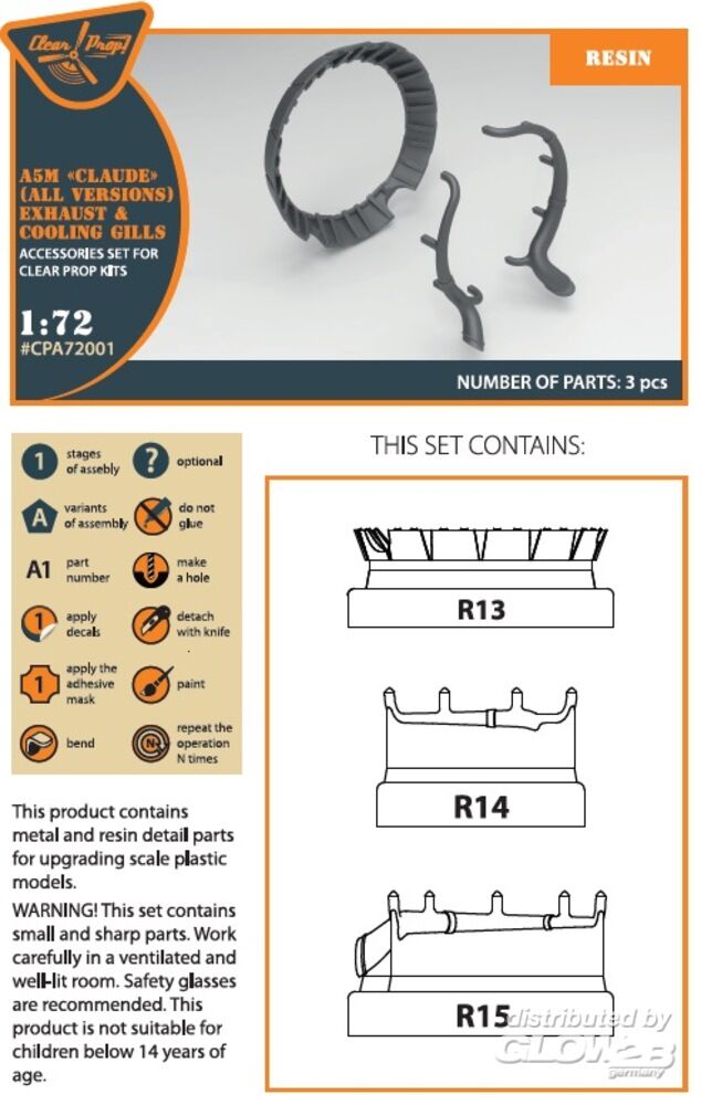 Clear Prop Accessories: A5M Claude (all versions) resin exhaust & cooling gills for CP kits CP720016/CP72008/CP72009/CP72010 in 1:72 [5072720016]