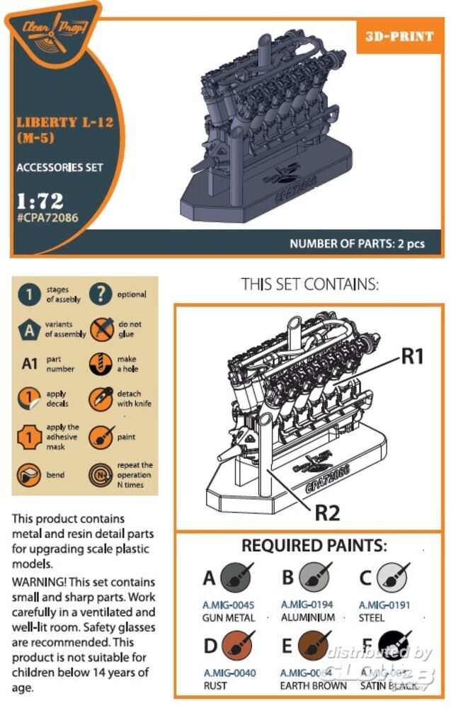 Clear Prop Accessories: Liberty L-12 engine set 3D print in 1:72 [5072720863]