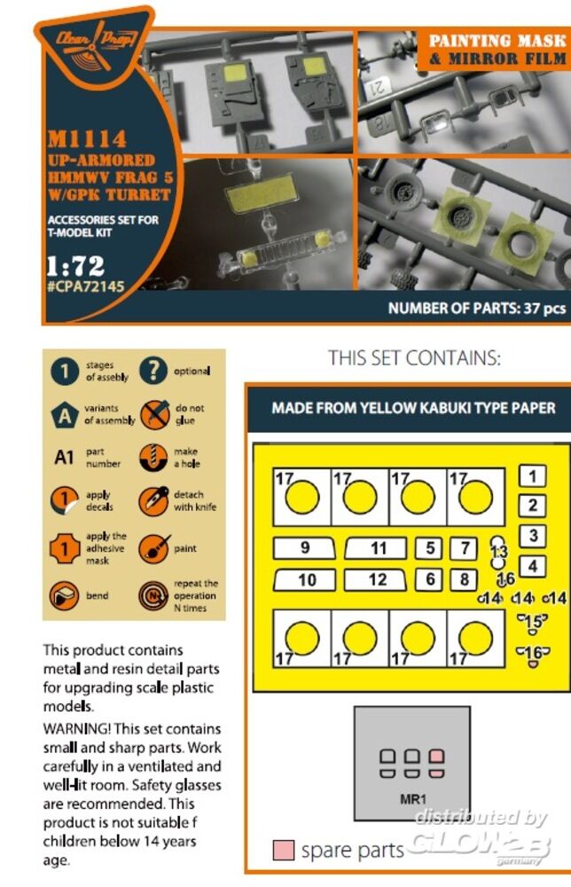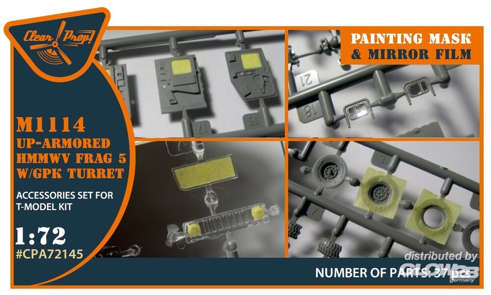Clear Prop Accessories: M1114 Up-armored HMMWV Frag 5 W/GPK Turren painting mask for T-Model kit in 1:72 [5072721457]