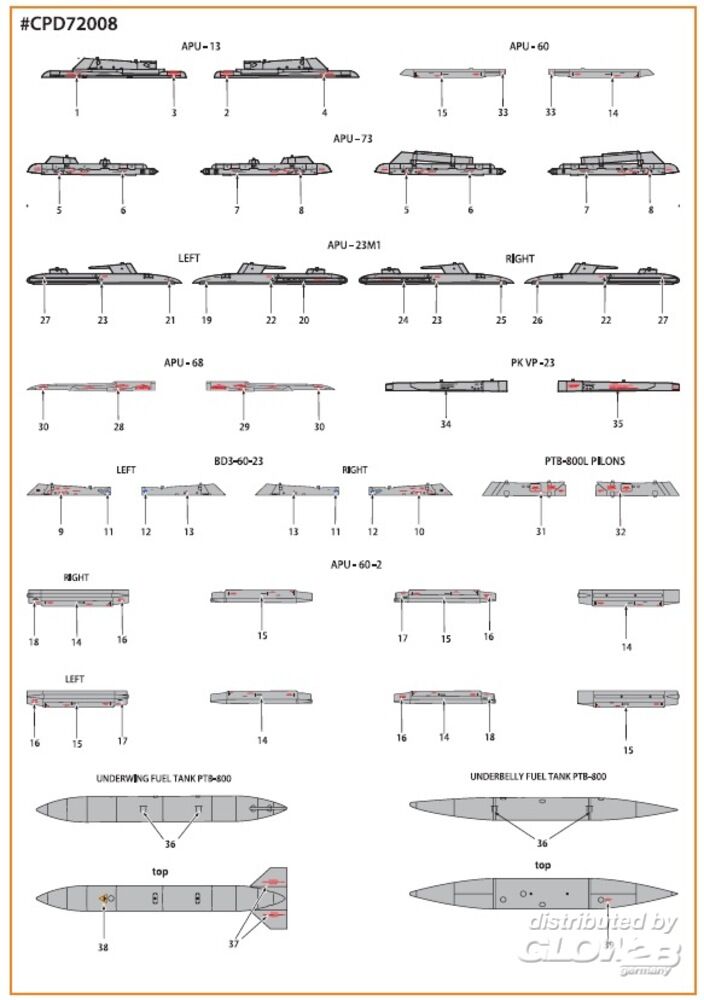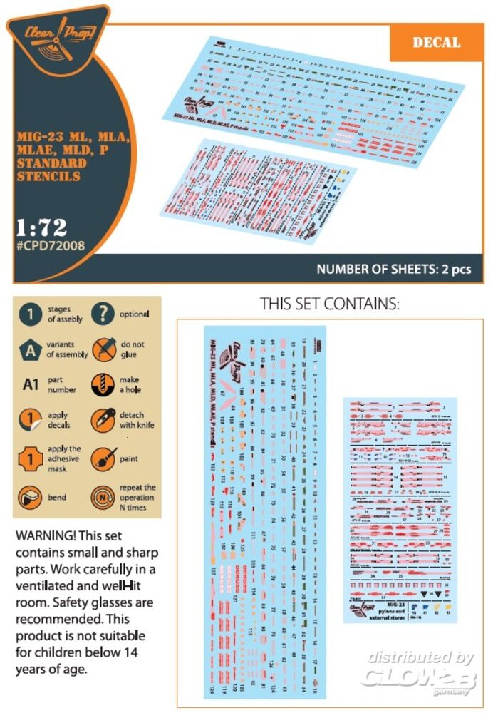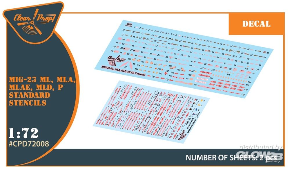 Clear Prop Accessories: MiG-23ML, MLA, MLD, P, MLAE standard stencils for CP kits and other in 1:72 [5073720084]