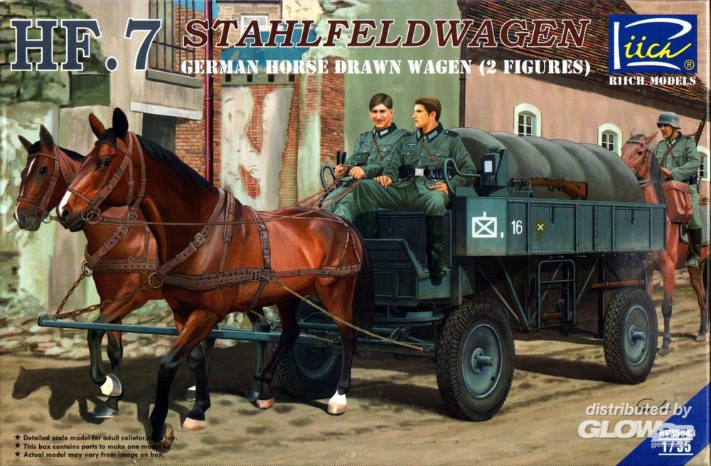 Riich Models: German Hf.7 Horse drawn Steel field wage w/2Horses &2 Figures in 1:35 [5339190045]