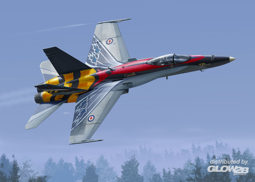 Zum 20. Jahrestag der Nutzung der F-18 Hornet ist diese Sonderfarbvariante für die 2002 Airshow entstanden. 20th Anniversary of the operational use of the F-18 Hornet is the Demo bird for the 2002 airshow circuit. Zusatzinformationen