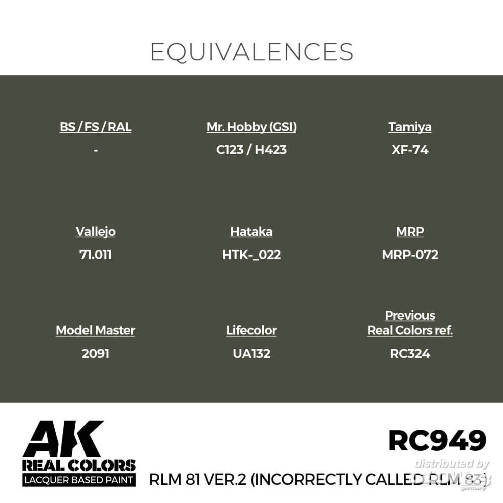AK Interactive: Real Colors: RLM 81 Ver.2 (incorrectly called RLM 83) 17 ml. [5568337022]