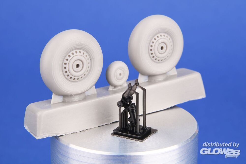 Für das wiederveröffentlichte Special Hobby Wellington Modell ist dieses neue und besser detaillierte Resin-Haupträder und Spornrad vorbereitet.