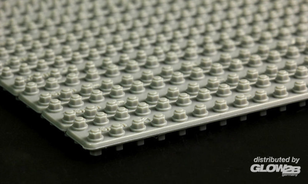 Diese zwei Typen von einfach zu verwendenden Muttern- und Bolzenmodellen werden in drei Größen angeboten. Sie können zu Modellen jeder Größenordnung verwendet werden, und sie können auch mit jedem Gebäude oder Material in Dioramen verwendet werden. Sie sind hilfreich, wenn Modelle realistischer aussehen sollen, und fügen den Modellen Details hinzu. Nuts and bolts for vehicle / diorama These two types of easy-to-use nut and bolt models are offered in three sizes. They can be used on models of any size, and they can also be used with any building or material in dioramas. They are useful for making models look more realistic and add details to the models. Zusatzinformationen