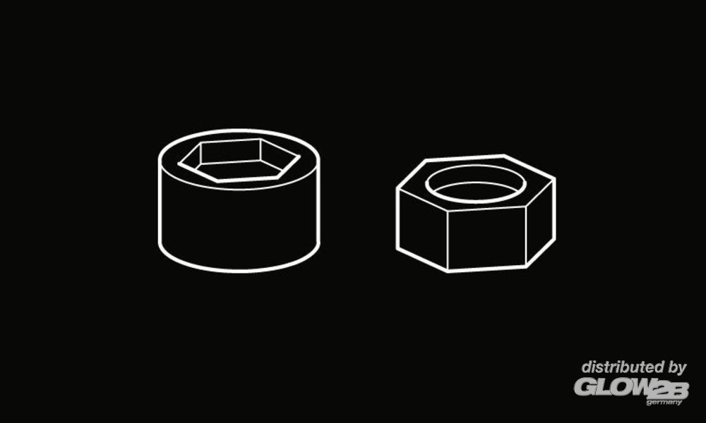 Diese zwei Typen von einfach zu verwendenden Muttern- und Bolzenmodellen werden in drei Größen angeboten. Sie können zu Modellen jeder Größenordnung verwendet werden, und sie können auch mit jedem Gebäude oder Material in Dioramen verwendet werden. Sie sind hilfreich, wenn Modelle realistischer aussehen sollen, und fügen den Modellen Details hinzu. Nuts and bolts for vehicle / diorama These two types of easy-to-use nut and bolt models are offered in three sizes. They can be used on models of any size, and they can also be used with any building or material in dioramas. They are useful for making models look more realistic and add details to the models. Zusatzinformationen