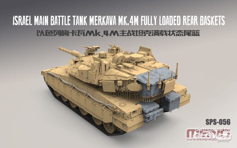 This SPS-056 Israel Main Battle Tank Merkava Mk.4M Fully Loaded Rear Baskets kit is a detail upgrade kit for MENG TS-036 Israel Main Battle Tank Merkava Mk.4M. This kit includes two fully loaded rear hull baskets, one fully loaded rear turret basket and one folded stretcher. This product is designed by digital sculpting. The canvas texture is realistically replicated. It’s a perfect match for the TS-036 model.