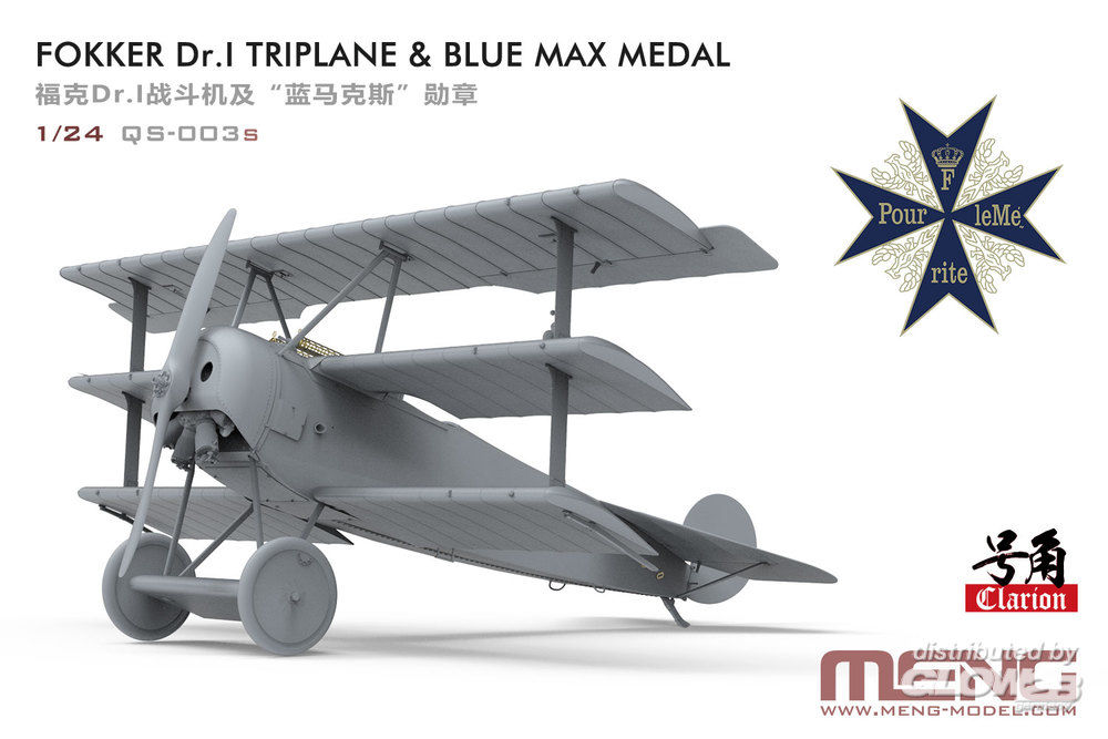 MENG-Model: Fokker Dr.I Triplane&Blue Max Medal(Lim.Edit,inc.one colle-class replic o.BlueMa in 1:24 [5930305]