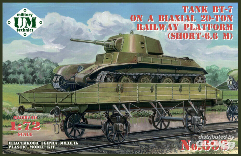 Unimodels: BT-7 tank on a biaxial 20-ton railway platform (short - 6.6m) in 1:72 [6079693]