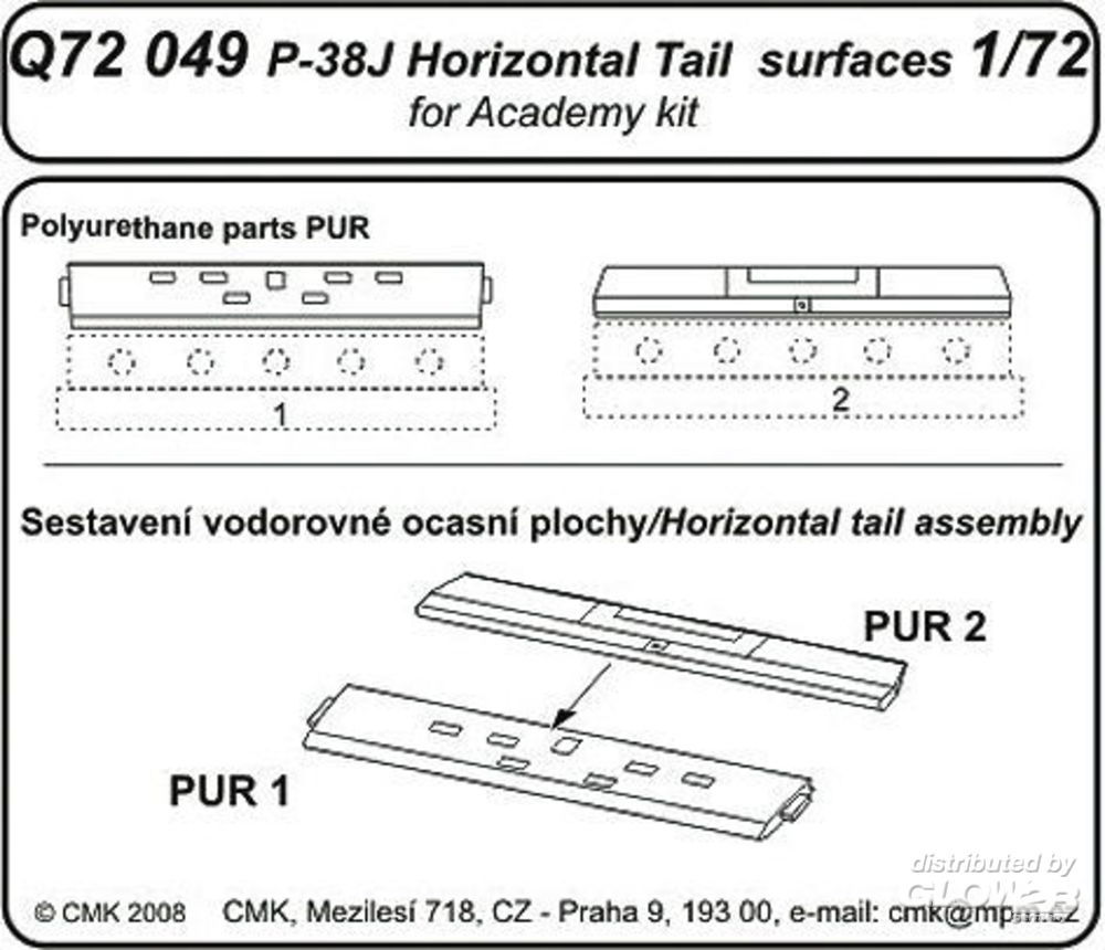 CMK: P-38J Lightning Tail horizontal surfaces für Academy Bausatz in 1:72 [6268049]