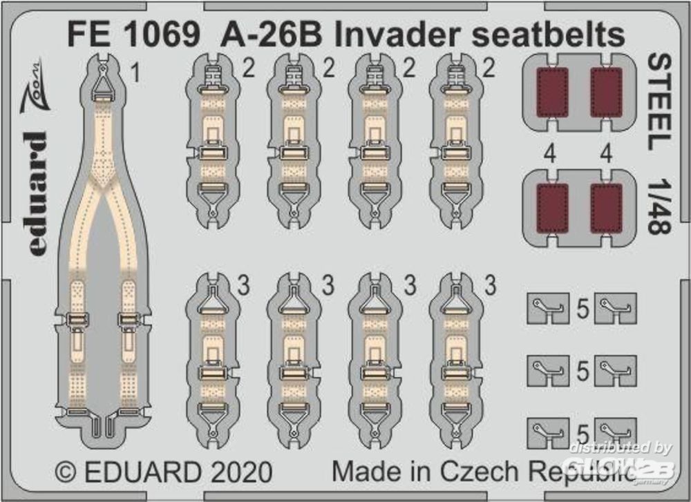 Eduard Accessories: A-26B Invader seatbelts STEEL for ICM in 1:48 [7241069]