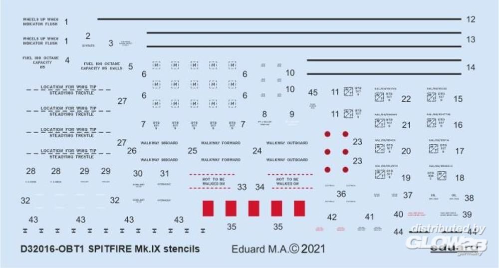 Eduard Accessories: Spitfire Mk.IX stencils for TAMIYA/REVELL in 1:32 [7307316]