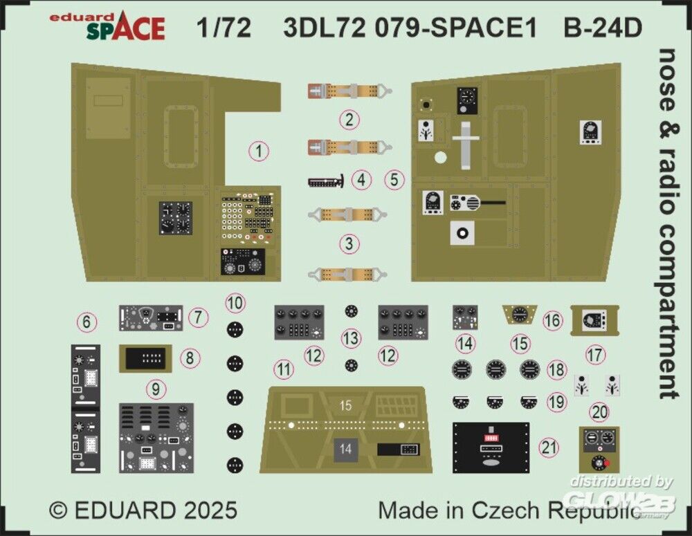 Eduard Accessories: B-24D nose & radio compartment SPACE for Airfix in 1:72 [7397279]