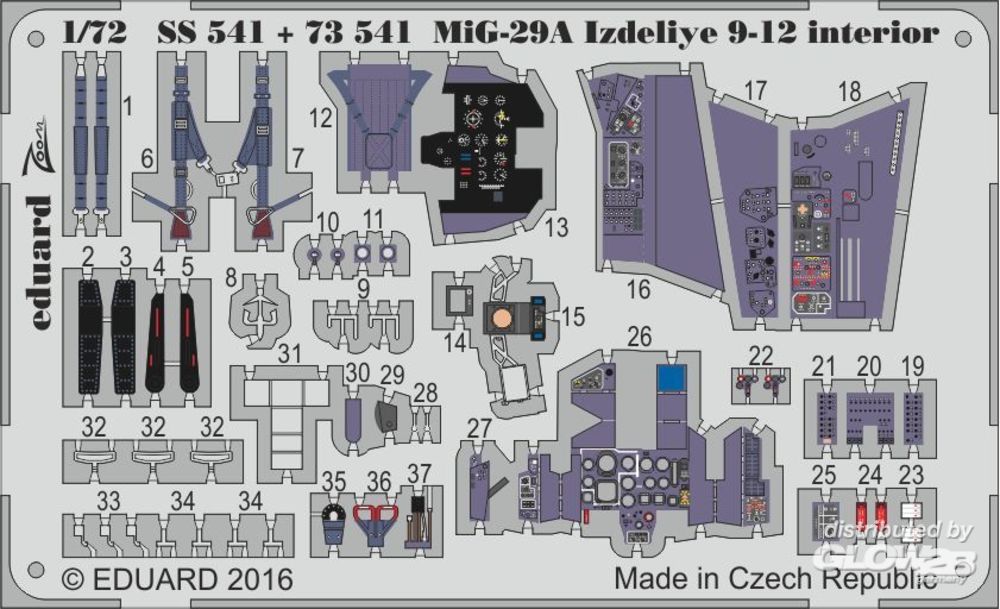 Eduard Accessories: MiG-29A Izdeliye 9-12 interior f.Trumpet in 1:72 [7550541]