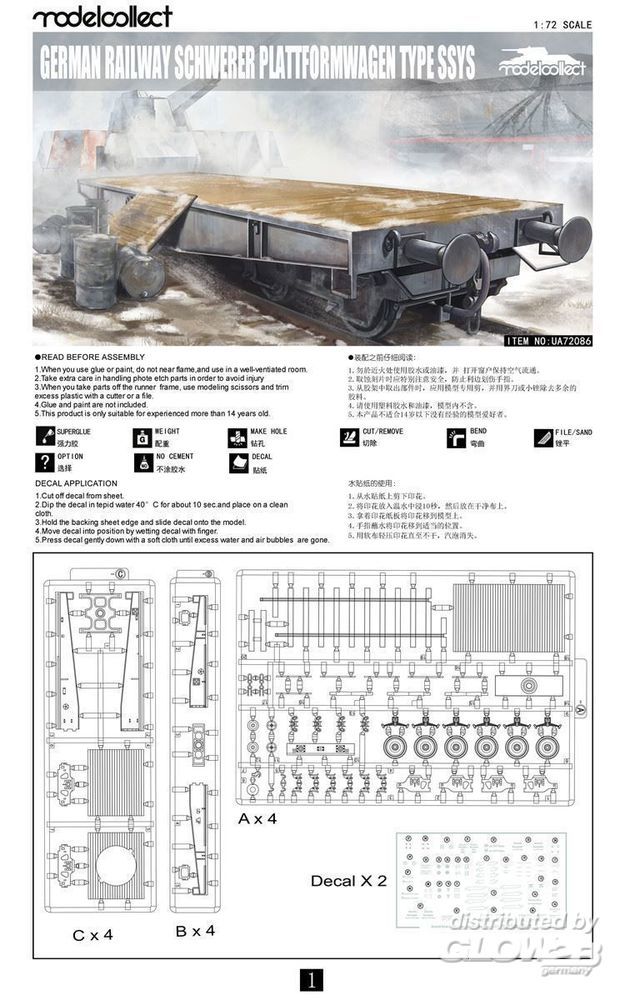 Modelcollect: German Railway Schwerer Plattformwagen Type ssys 1+1 pack in 1:72 [8085072086]