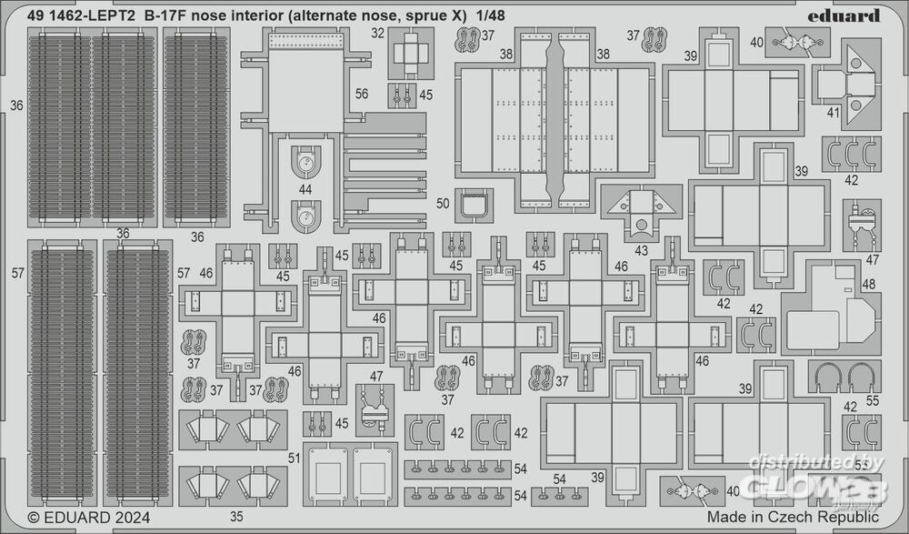 Eduard Accessories: B-17F nose interior (alternate nose, sprue X) 1/48 in 1:48 [8591491462]