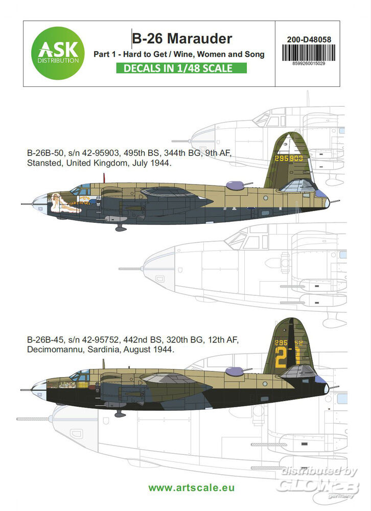 Art Scale Kit: B-26B Marauder part 1 - Over Europe: Wine, Women and Song and Hard To Get in 1:48 [9260015029]