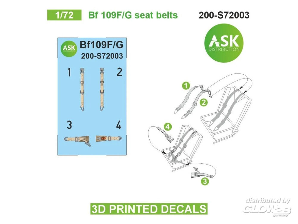 Art Scale Kit: Bf 109F/G seat belts - 3D printed decals by ASK in 1:72 [9260023826]