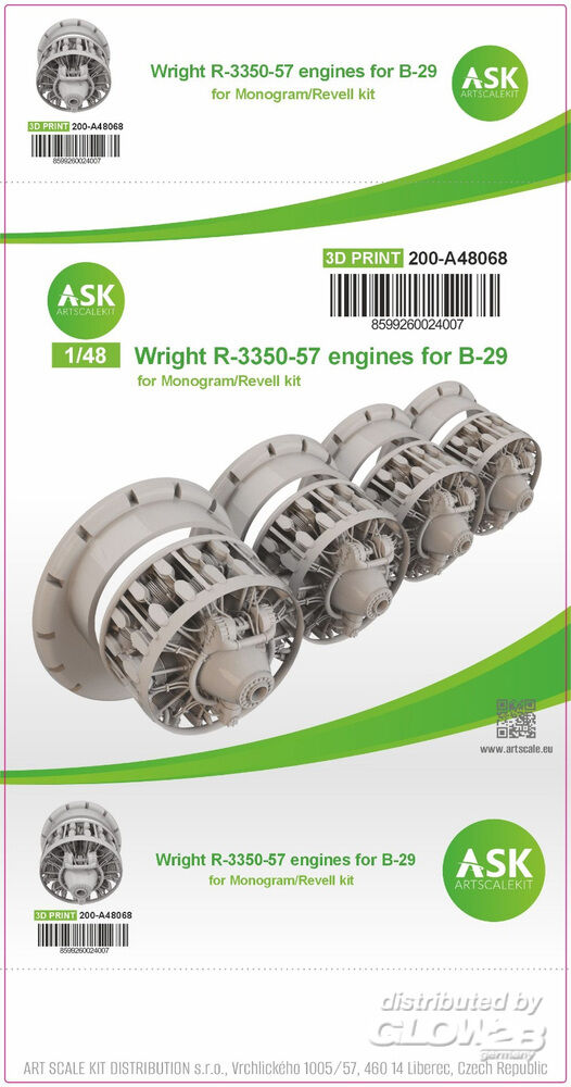 Art Scale Kit: B-29 engine set - Wright R-3350-57, 4 pc. set, ASK 200-A48070 in 1:48 [9260024014]