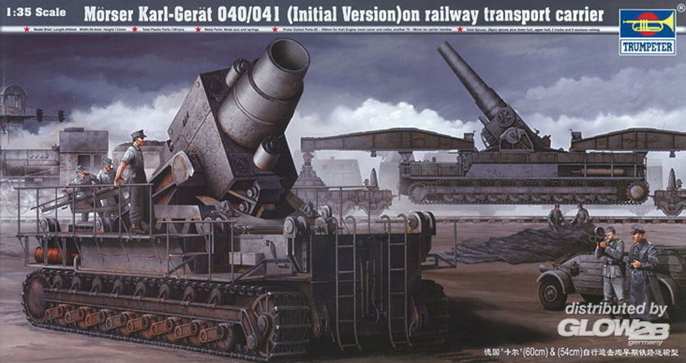 Trumpeter: Mörser Karl Gerät 040/041 auf Eisenbahn-Transport-Trailer in 1:35 [9360208]