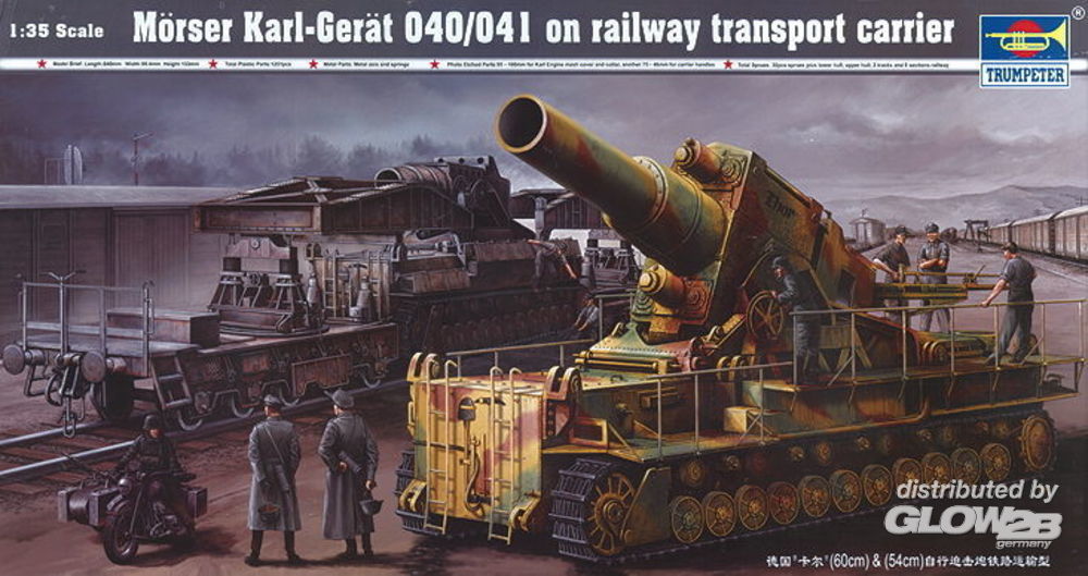 Trumpeter: Mörser Karl Gerät 040/041 auf Eisenbahn-Transport-Trailer in 1:35 [9360209]