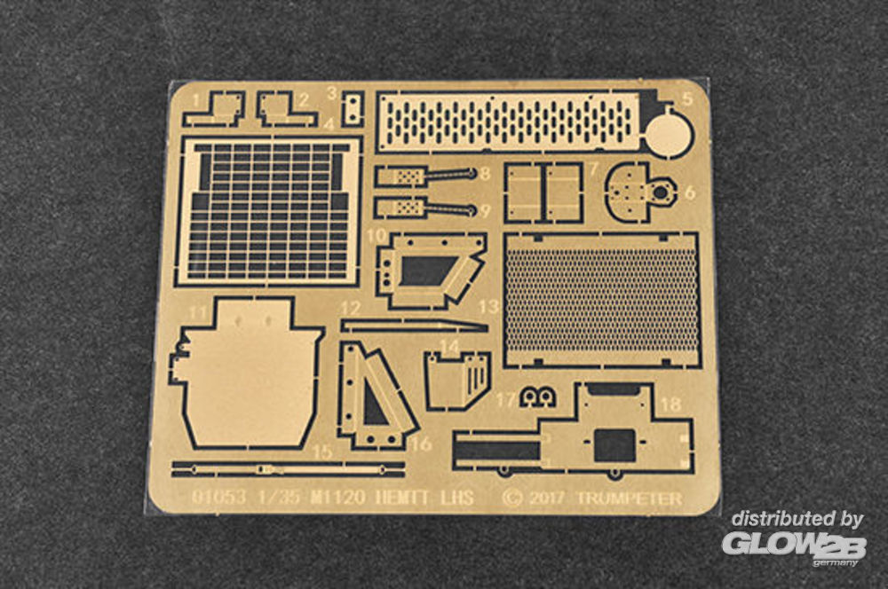 - Antriebsstrang komplett mit Motorgetriebe, Differentialgehäuse und Federung. - Die Reifen sind Hohlgummi mit sehr gutem Profil - Die Windschutzscheibe und die Seitenfenster bestehen aus klaren Teilen - Fotoätzteile enthalten - Container enthalten Detailed cab. > Full drive train assembly complete with engine transmission, differential housing and suspension units. > The main tires are hollow rubber with very good tread pattern > The windshield and side windows are made of clear parts. > Photo-etched parts included > Container included Zusatzinformationen