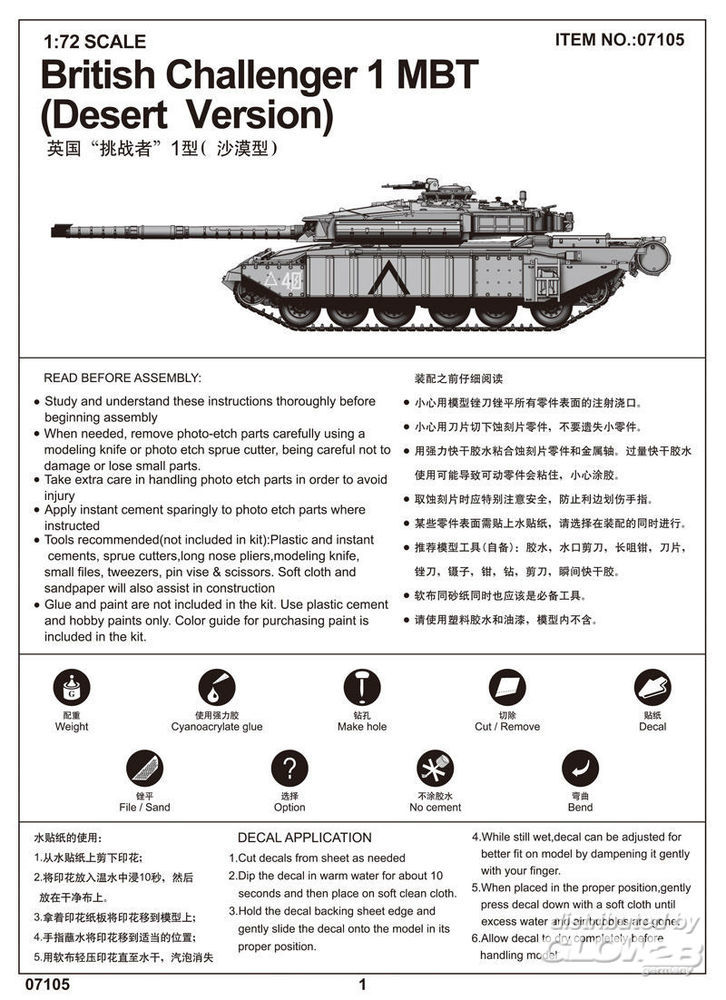 Trumpeter: British Challenger 1MTB (Desert version) in 1:72 [9367105]
