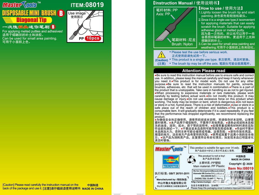 Master Tools: Disposable Mini Diagonal Brush, 10 pcs [9368019]