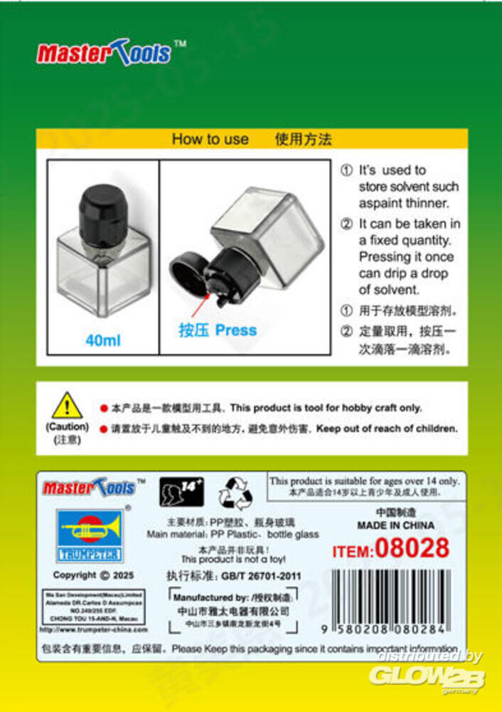 Master Tools: 40ml Square Bottle for model solvent [9368028]