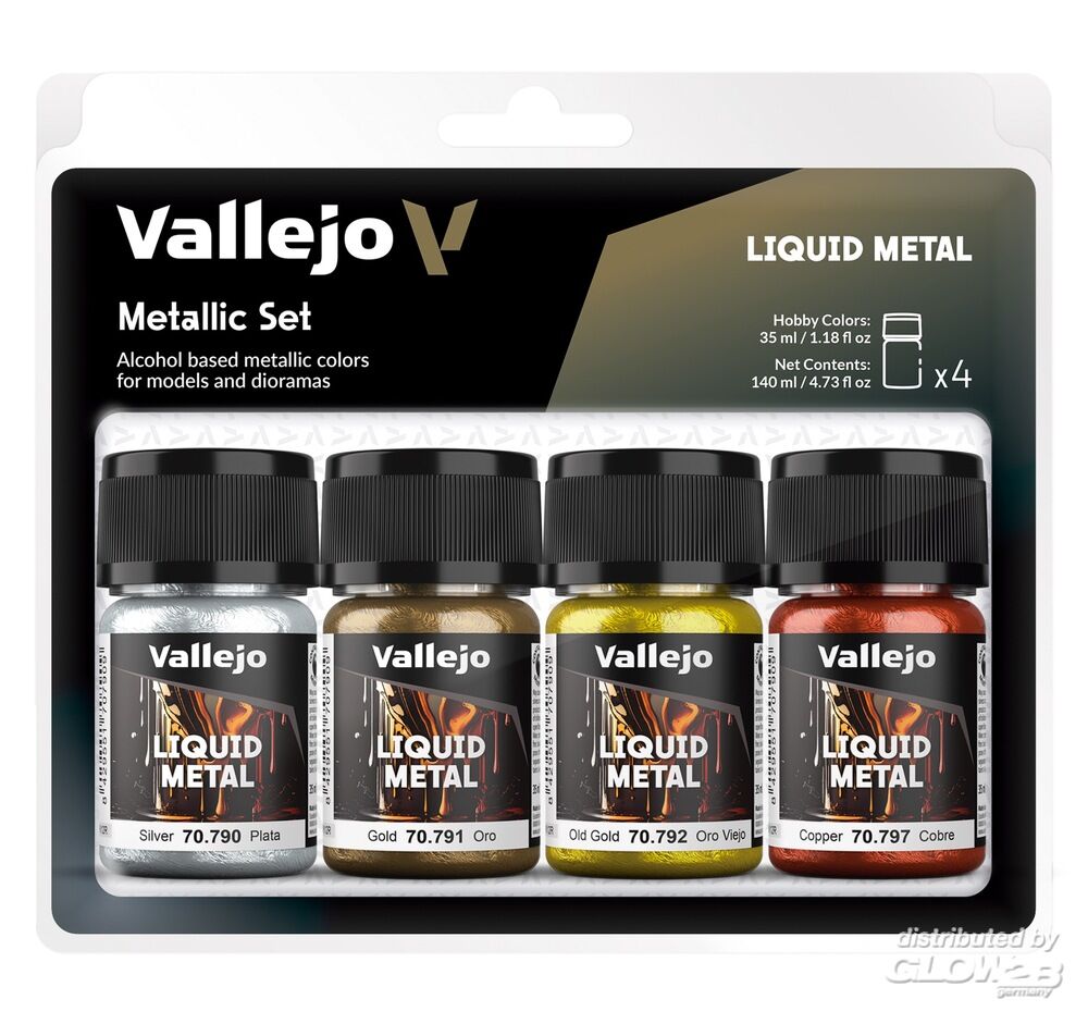 Vallejo: Alcoholbased Metallic Set Gold (2), Silver & Copper 35 ml [9551701990]