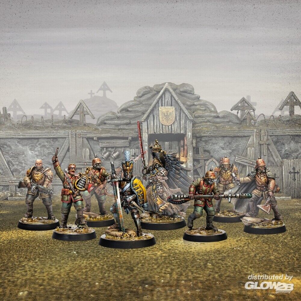 - Spielbereite Starter-Kriegsbande für das Spiel - Enthält Links zum kostenlosen Spiel, zu Fraktionsregeln, Starterlisten und mehr - Enthält Miniaturen mit alternativen Aufbauoptionen - Fein ausgearbeitete Details - Bases sind enthalten Das Set enthält: - 1 Hauptmann-Miniatur - 1 Feldkaplan-Miniatur - 3 Stoßtruppen-Miniaturen - 3 Yeomen-Miniaturen - Satz mit 25/32-mm-Bases Zusatzinformationen
